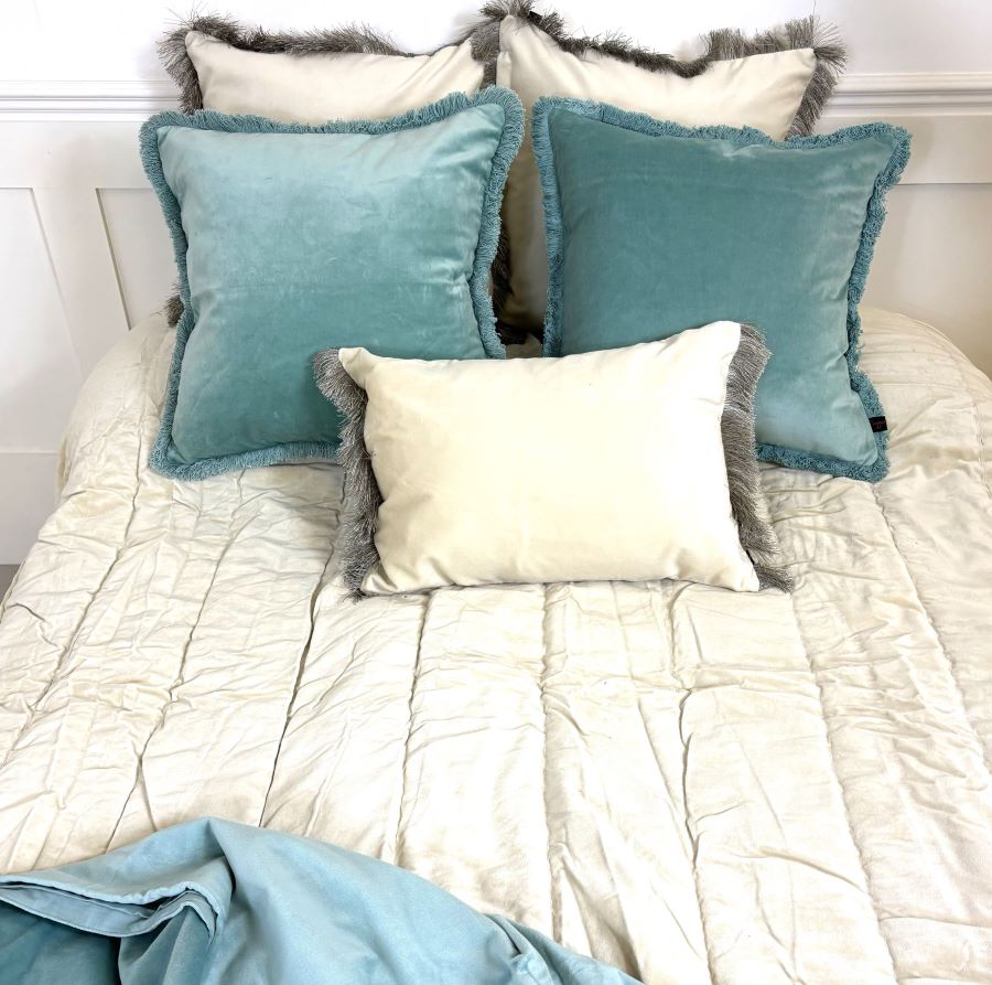 Add this stunning cream velvet cushion with contrast silver fringe detail to your bedroom or lounge this year.