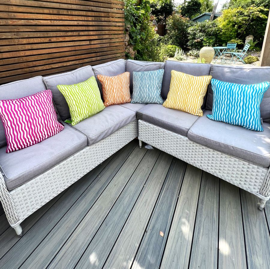 This ripple grey striped design is both showerproof and UV resistant, meaning these outdoor cushions can withstand our seasonal showers and sunshine.