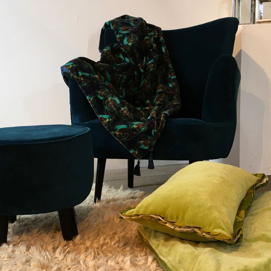 You can add one of our many contrast velvet cushions such as our Felicity taupe or chocolate brown to go with this .