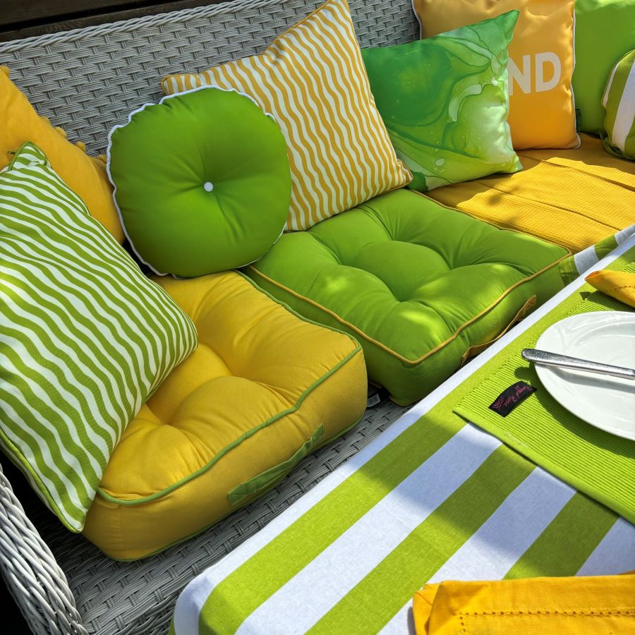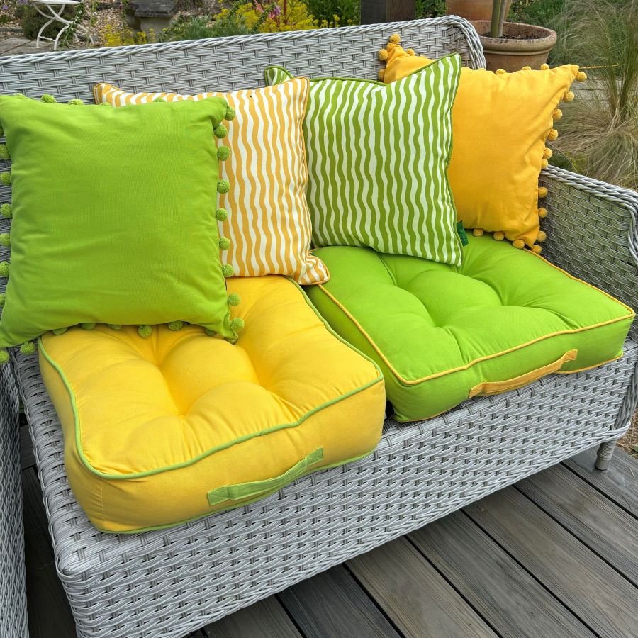 Your Lime Green garden cushion will co-ordinate brilliantly with our Bobby gold and lime green bobbles cushions.