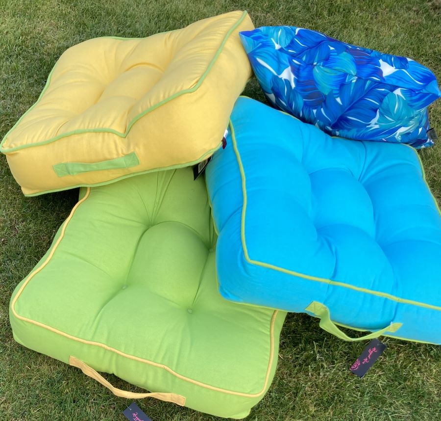 This gorgeous plumpy cushion is made from 100% cotton. This Lime Green Garden Cushion measures 50cm x 50cm x 12cm. It has an unusual box shape which is perfect for the ground. You could even pair them together on your garden bench! With a useful carry strap stitched to one edge you can go from outside in a jiffy. This makes it easy to carry around with you. Perfect for when you’re visiting friends or attending outdoor events. It’s so very comfortable that you may not want to move from it!