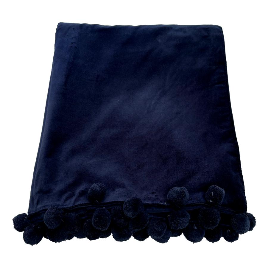 This stunning Belinda Navy Blue velvet throw is made from a 100% cotton luxurious velvet. It looks and feels so sophisticated with its pretty cotton pom pom trim,it will definitely bring a touch of glamour to any bedroom, lounge or boudoir.