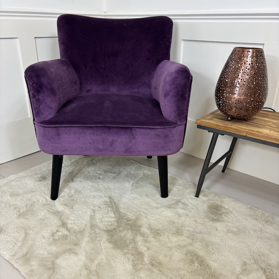 Our new Bentley accent chair in our stunning aubergine purple velvet.