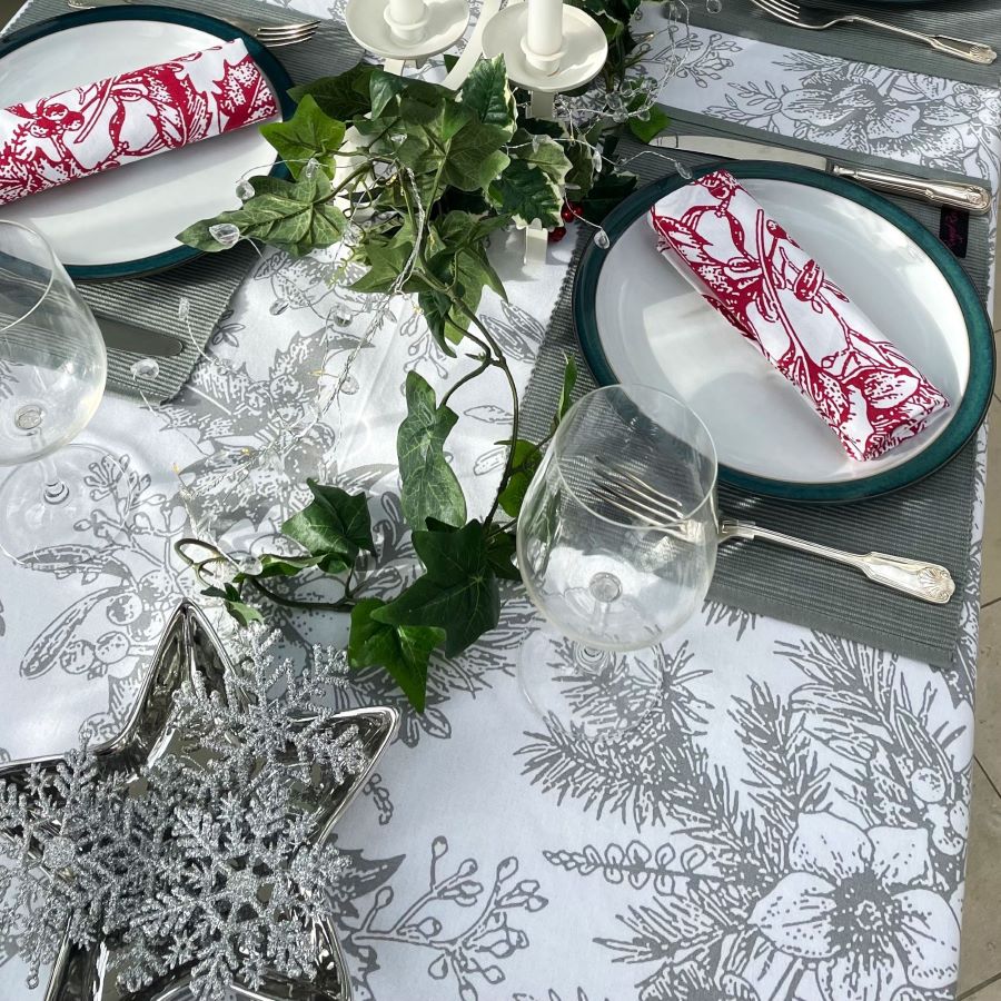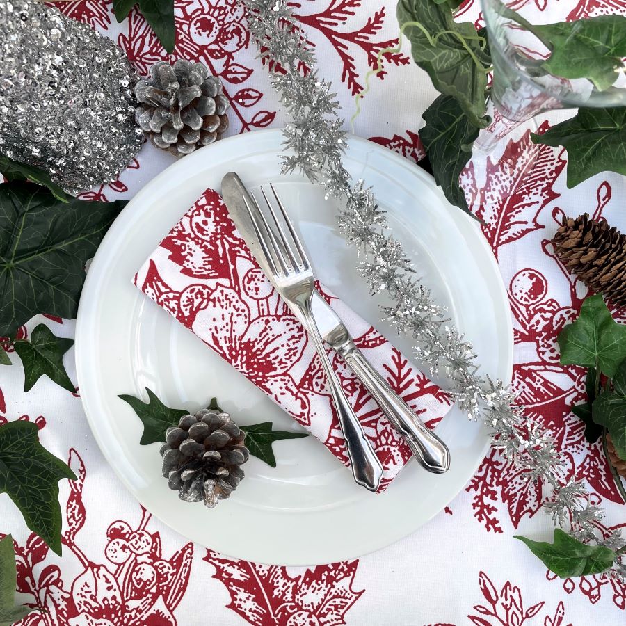 These gorgeous cloth napkins are an exclusive design created by Ragged Rose.They feature a classic print of red Holly and Festive Foliage updated in a more contemporary way. Just perfect to dress the Christmas dining table for the yuletide season.
