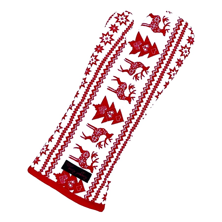 Prepare your Christmas dinner in style this festive season with this red Nordic Christmas Aga Gauntlet.