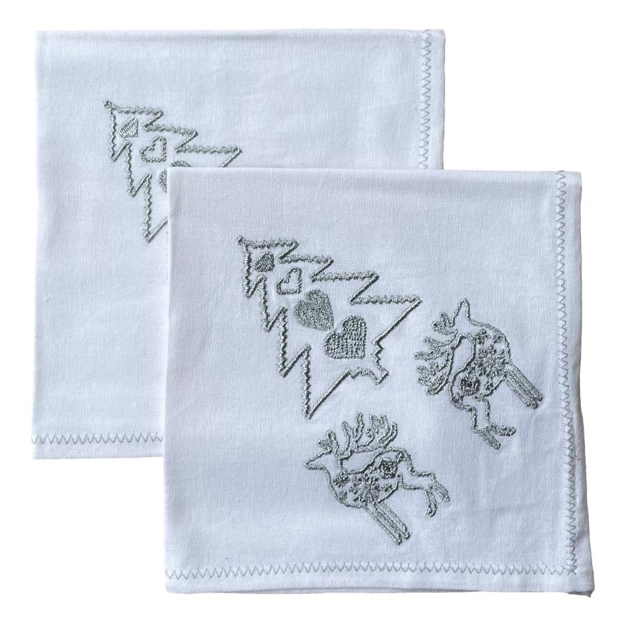 Silver Embroidered Christmas Napkins